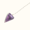 The Pendulum is a timeless divination tool, designed to channel intuition and spiritual guidance. Crafted from natural gemstones and paired beautifully with a Pendulum Board, it offers clarity, focus, and insight during meditation, energy work, or daily reflection. Available in Quartz Crystal, Rose Quartz, Amethyst, and Obsidian, each stone carries its own unique vibration to support your journey. Key Features Natural gemstone pendulum: Quartz Crystal, Rose Quartz, Amethyst, or Obsidian Elegant pointed design with a sturdy metal chain Length: Stone ~4 cm | Chain ~18 cm Includes protective pouch Ethically sourced and hand-polished To care for your Pendulum, gently wipe with a soft, dry cloth. Keep away from water and harsh chemicals to preserve the natural quality of the stone. What it Does? Pendulums have been used for centuries as a bridge between the conscious and subconscious mind. They respond to subtle energy shifts, providing insight, clarity, and guidance. Quartz Crystal – Amplifies energy, focus, and spiritual clarity Rose Quartz – Encourages love, compassion, and emotional healing Amethyst – Supports calm, intuition, and spiritual awareness Obsidian – Grounds energy and protects against negativity Used with a Pendulum Board, the pendulum’s movements can be interpreted with greater accuracy, allowing you to explore yes/no questions or deeper personal insights. Together, they form a powerful tool for meditation, intention setting, and self-discovery. Vibrational Benefits Enhances Intuition: Strengthens connection to your inner guidance Energy Cleanser: Helps release blockages and negative influences Emotional Balance: Encourages calm and centered decision-making Spiritual Growth: Opens space for mindfulness and deeper reflection The Pendulum, especially when paired with a Pendulum Board, combines functional elegance with high-vibrational energy, making it a meaningful addition to any ritual, altar, or sacred practice. Shipping Information We offer fast, affordable shipping across Europe and worldwide. In the Netherlands and Belgium, all products are delivered within 24 hours. For our clients in the Netherlands, free shipping is offered for orders over 30 euros, and for those in Belgium, for orders over 40 euros. For more detailed information regarding shipping in Europe and Worldwide, refer to Shipping Information